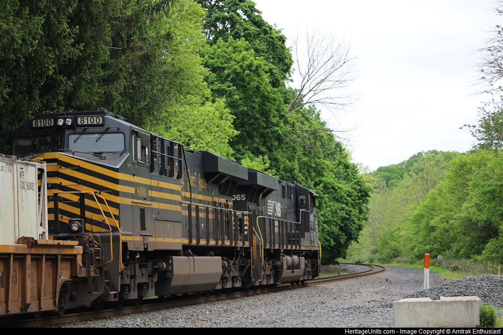 NS 8100 trails on NS 20K through Stanton Station Road in Flemington, NJ on Memorial Day 2020.