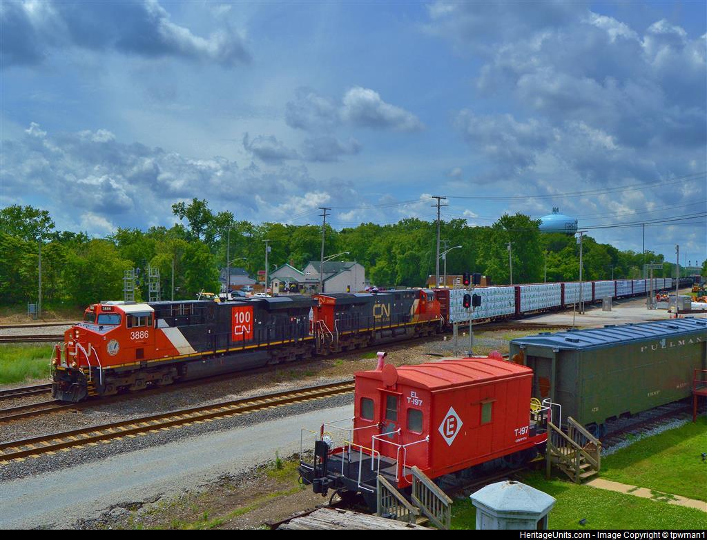 CN 100th Anniversary unit 3886 leads an eastbound manifest down the former EJ&E through Griffith, Indiana.