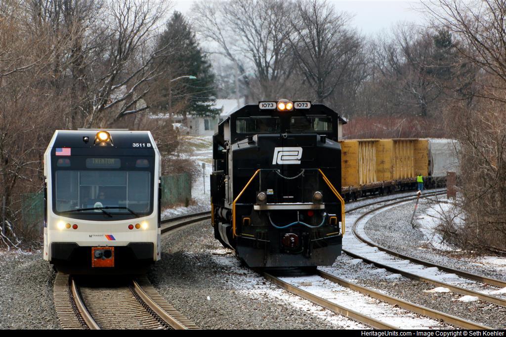 NS 39G sitting at Cove Rd while the NJT River Line passes by.