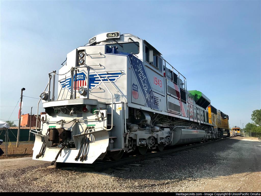 UP SD70AH 1943 “The Spirt of the Union Pacific” sits on display at Union Pacific’s Home Platte for the 2021 Men’s NCAA College World Series