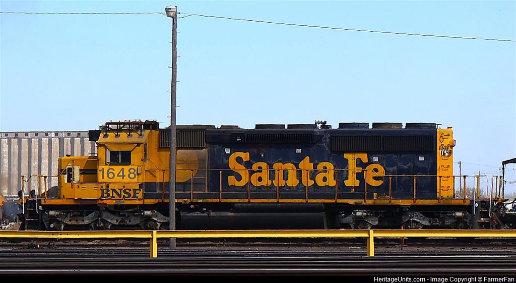 Ex-ATSF SD40-2 #5108 (now BNSF 1648) sits in BNSFs Wichita yard coupled to another BNSF SD40-2, idling.
