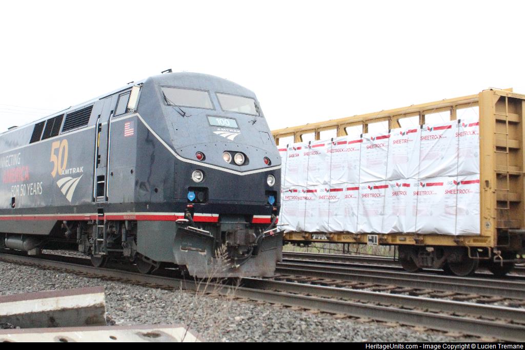 AMTK 100 on Amtrak 64 at the Depew station