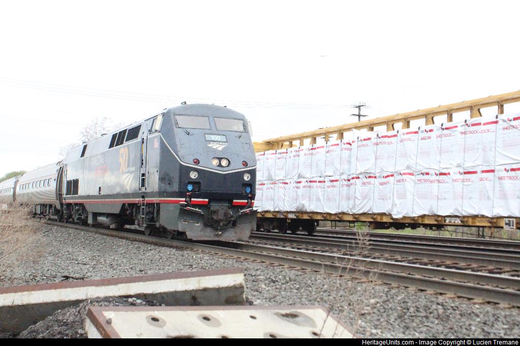 AMTK 100 on Amtrak 64 rolling into Depew station