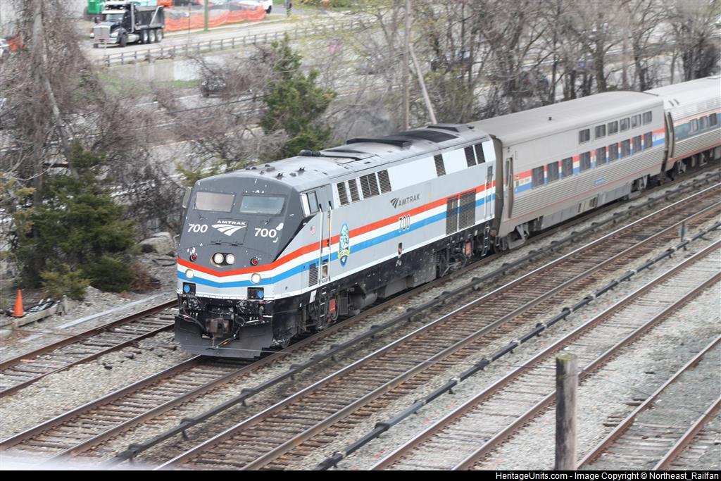 AMTK 700 leads a full consist lake shore limited through Croton-on-Hudson.