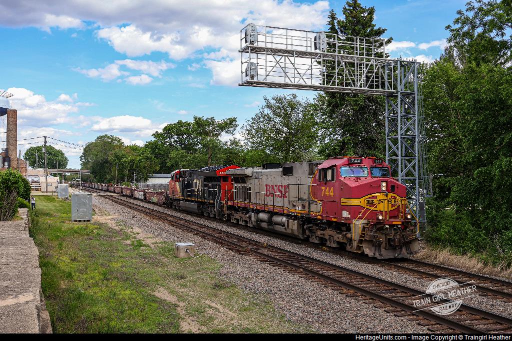 BNSF 744 and CN 3268 leads B-CHCTAC through Rochelle