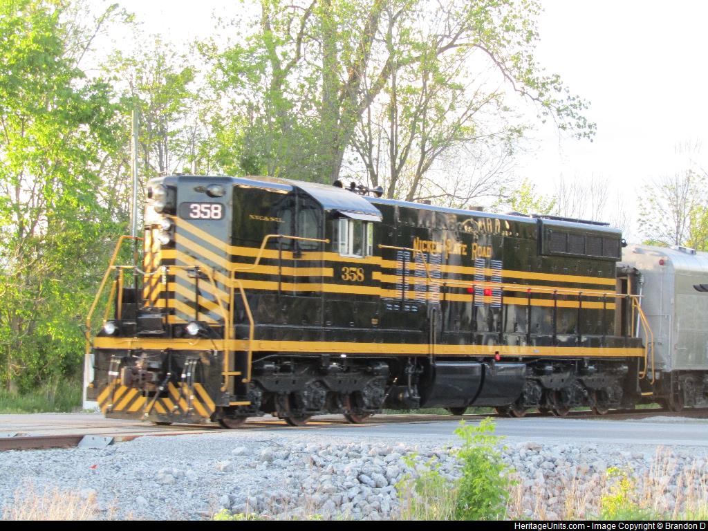 Nickel Plate 358 follows Nickel Plate 765 as they head north through Angola on the Ice Cream Train
