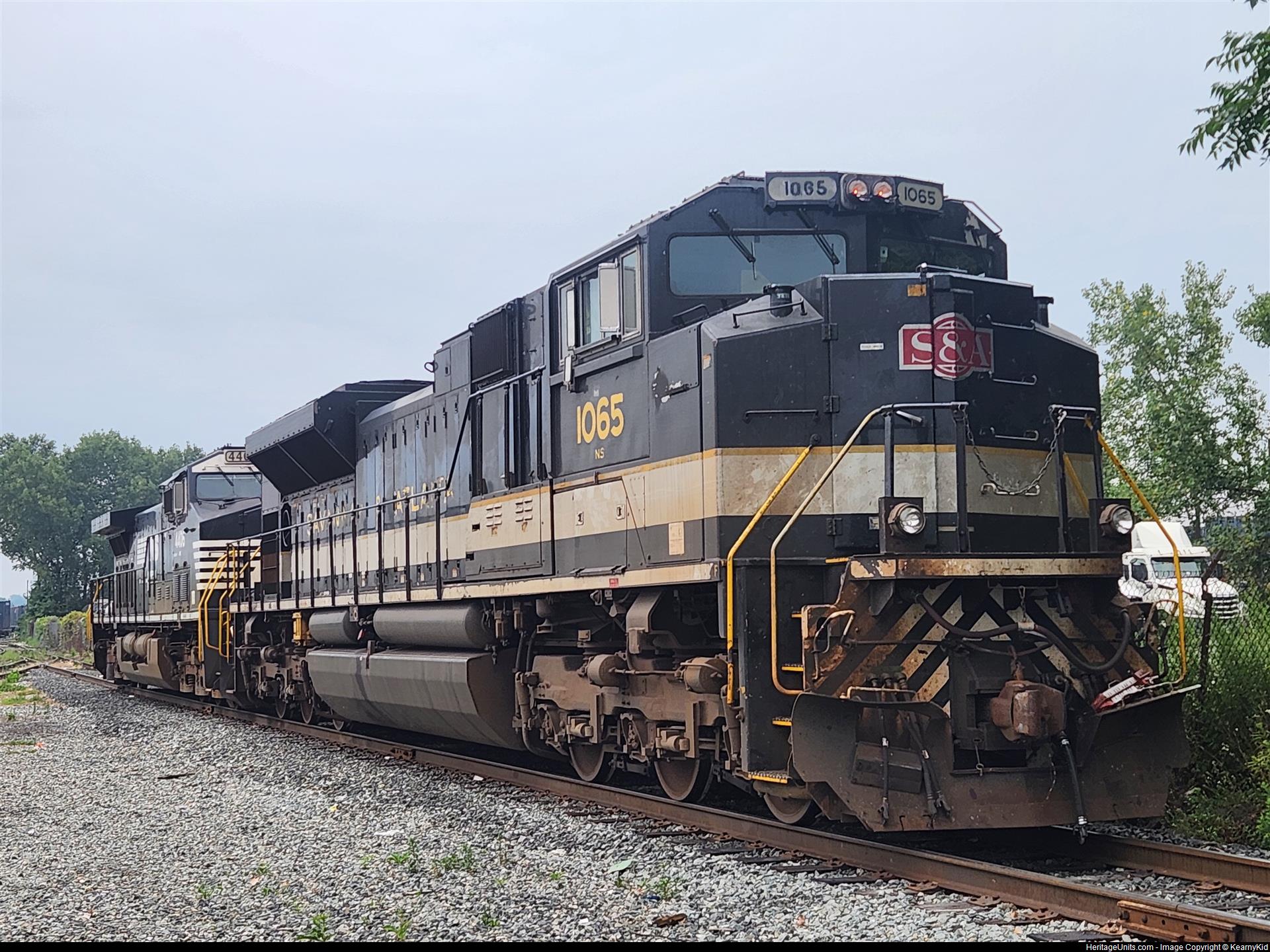 NS 1065, the Savannah & Atlanta Heritage Unit, takes a break between trash train assignments. The power from the previous days 62V sits in South Kearny just off Central Ave. It will head out on 63V either tonight or tomorrow night.