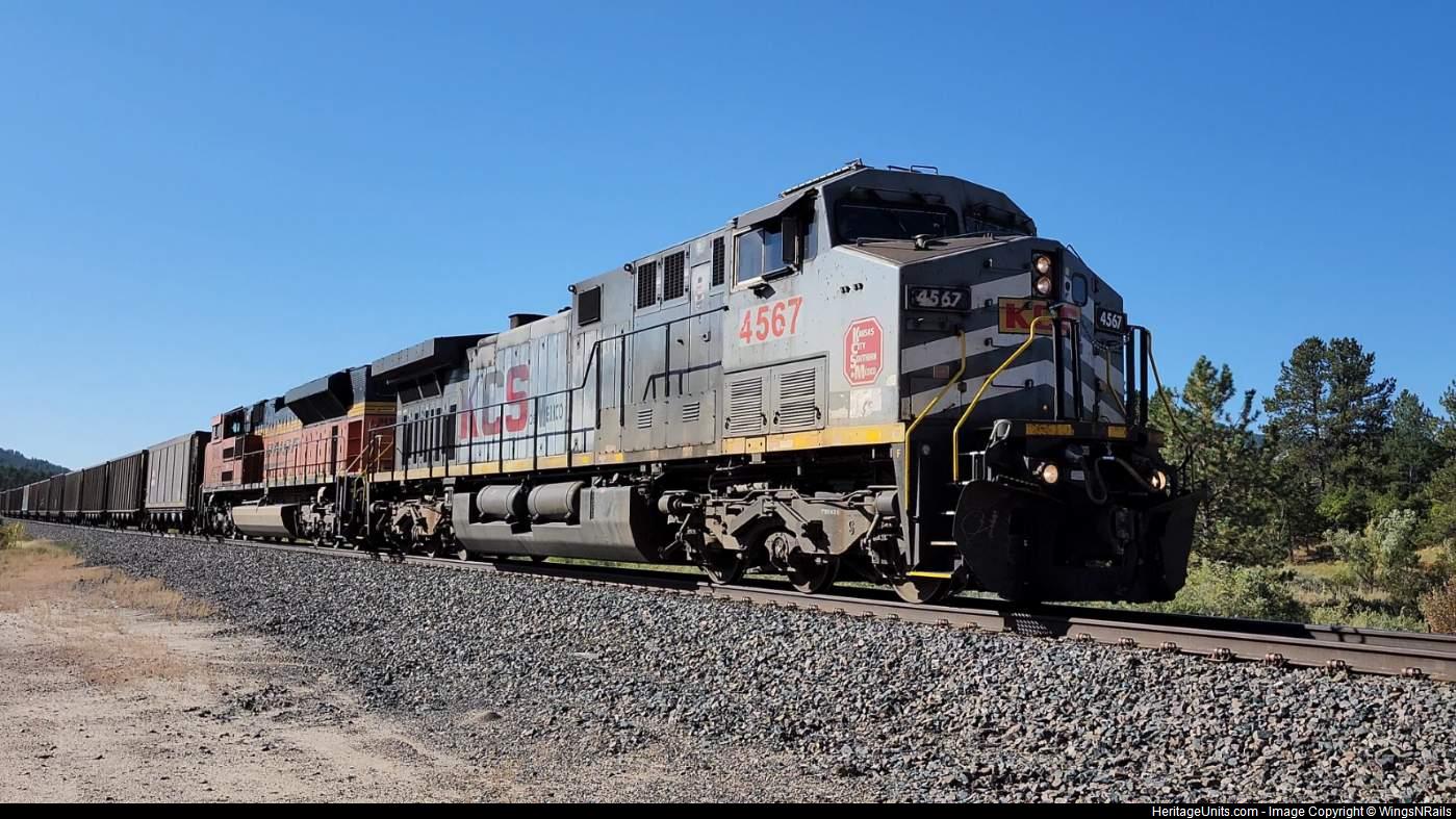 KCSM 4567 (sequentially numbered!) leads a NB BNSF E-MICBTM, with a great horn. Also, right after this train there was a wind turbine stalk train as well. Great day.