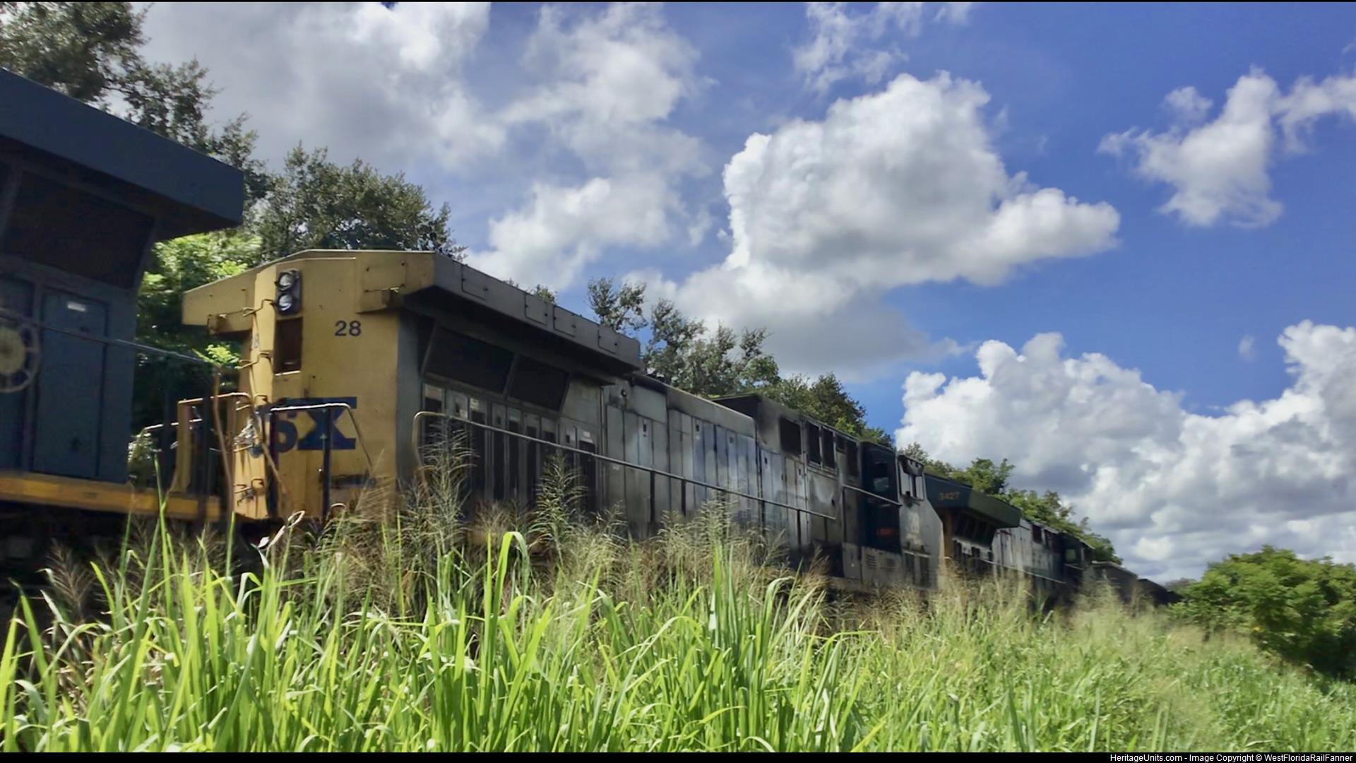 CSX 28 is trailing 2 of 3 on B339 at Valrico, FL hauling 48 cars. Got a great horn show!