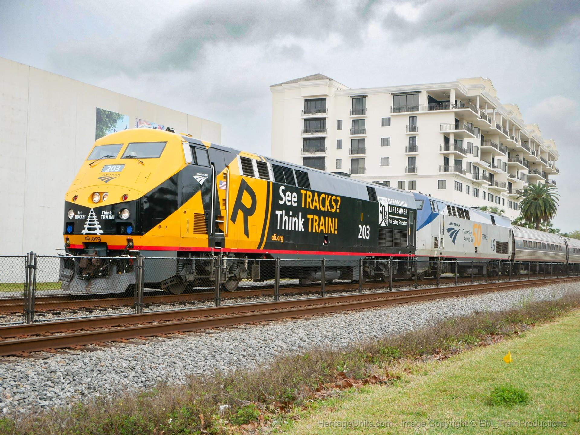 AMTK 203 and 46 leading Amtrak P041-03, sitting at the Kissimmee Amtrak Station.