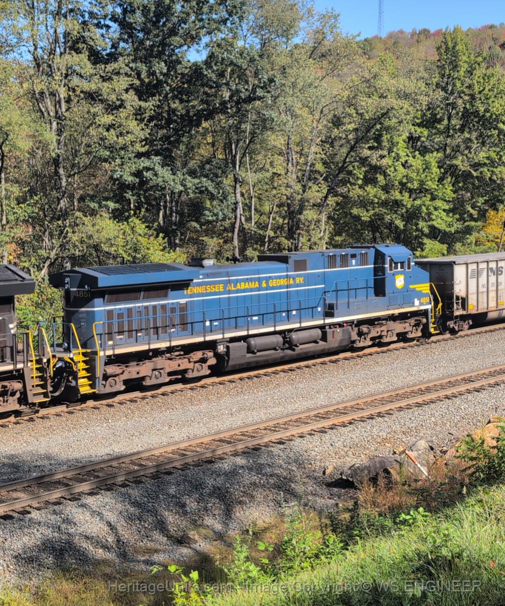 Mid train DPU westbound to Shire Oaks, PA. Taken from the hillside at the Railroad Overlook.