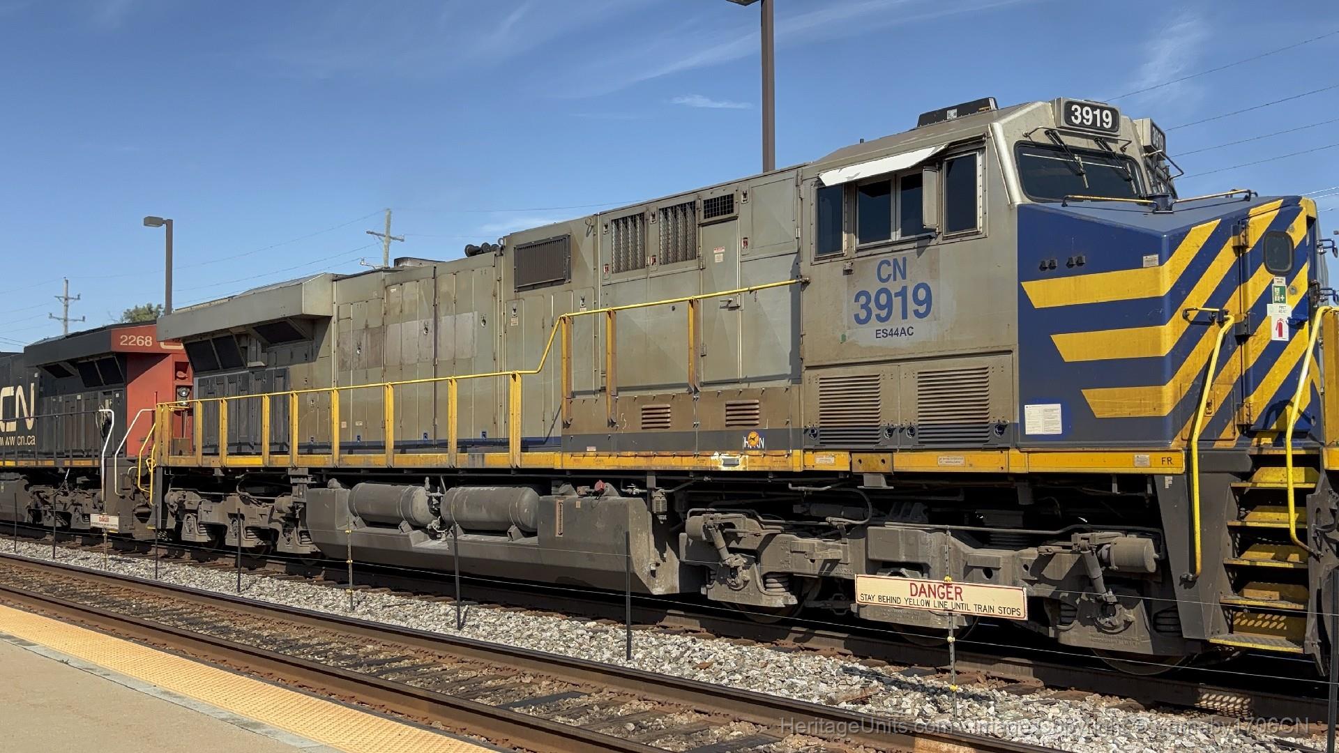 September 27, 2025 CN 3919 trails number 2 on a grain train southbound