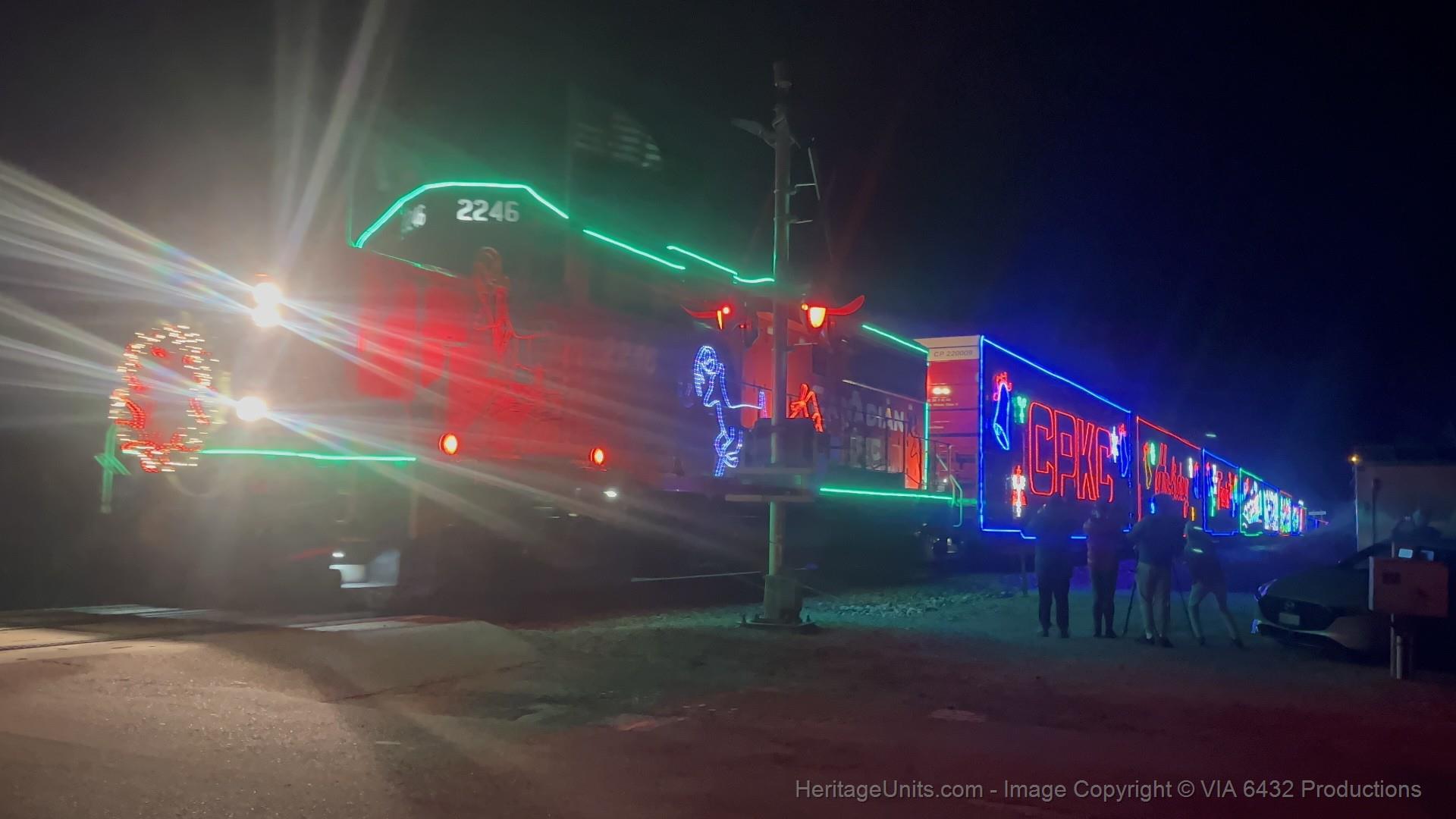 CP 2246 leading CPKC 2025 holiday train heading south on the CP Hamilton sub to Hamilton