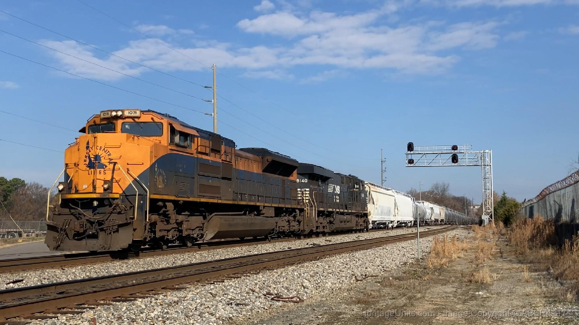 NS 1071 leading NS 131 ducking under the Tuscaloosa signals.