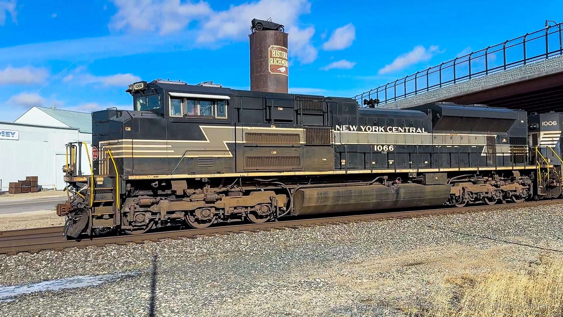 New York Central heads westbound through the Depot District in downtown Richmond, Indiana.