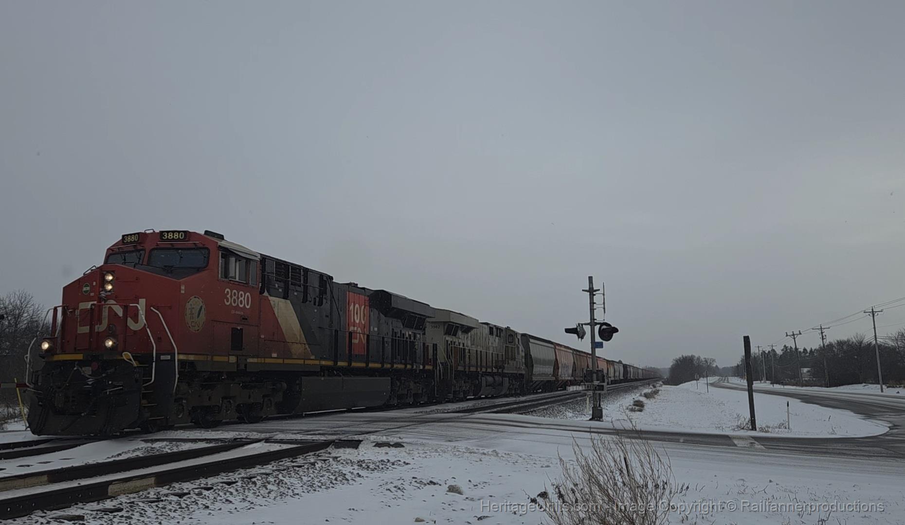 3880 and Ex cit unit lead northbound Potash train
