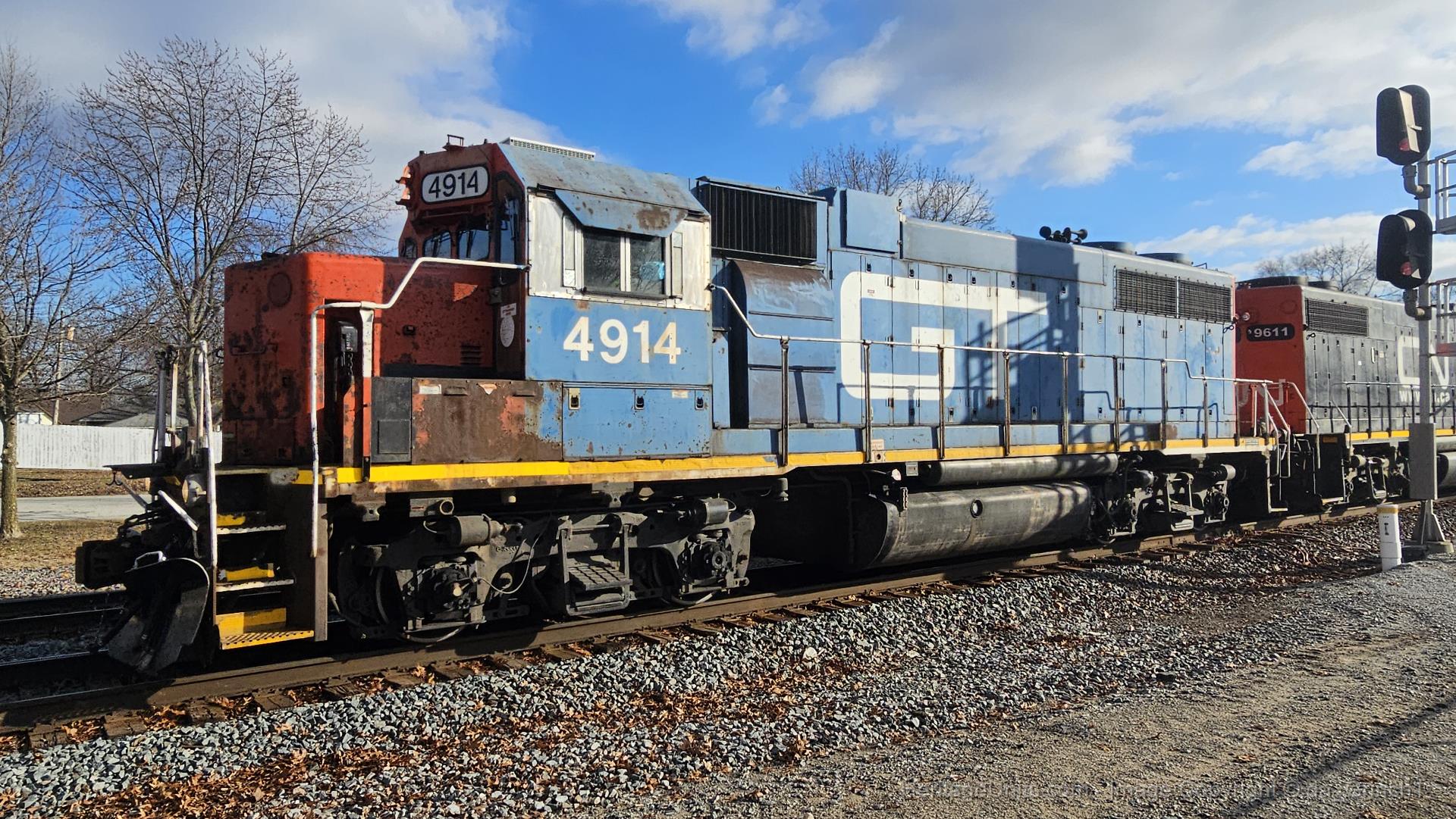 A consist of GTW4914, IC9611 & EJE663 leading an eastbound mixed manifest freight up the Matteson Subdivision and through Griffith Indiana en route to Kirk Yard.