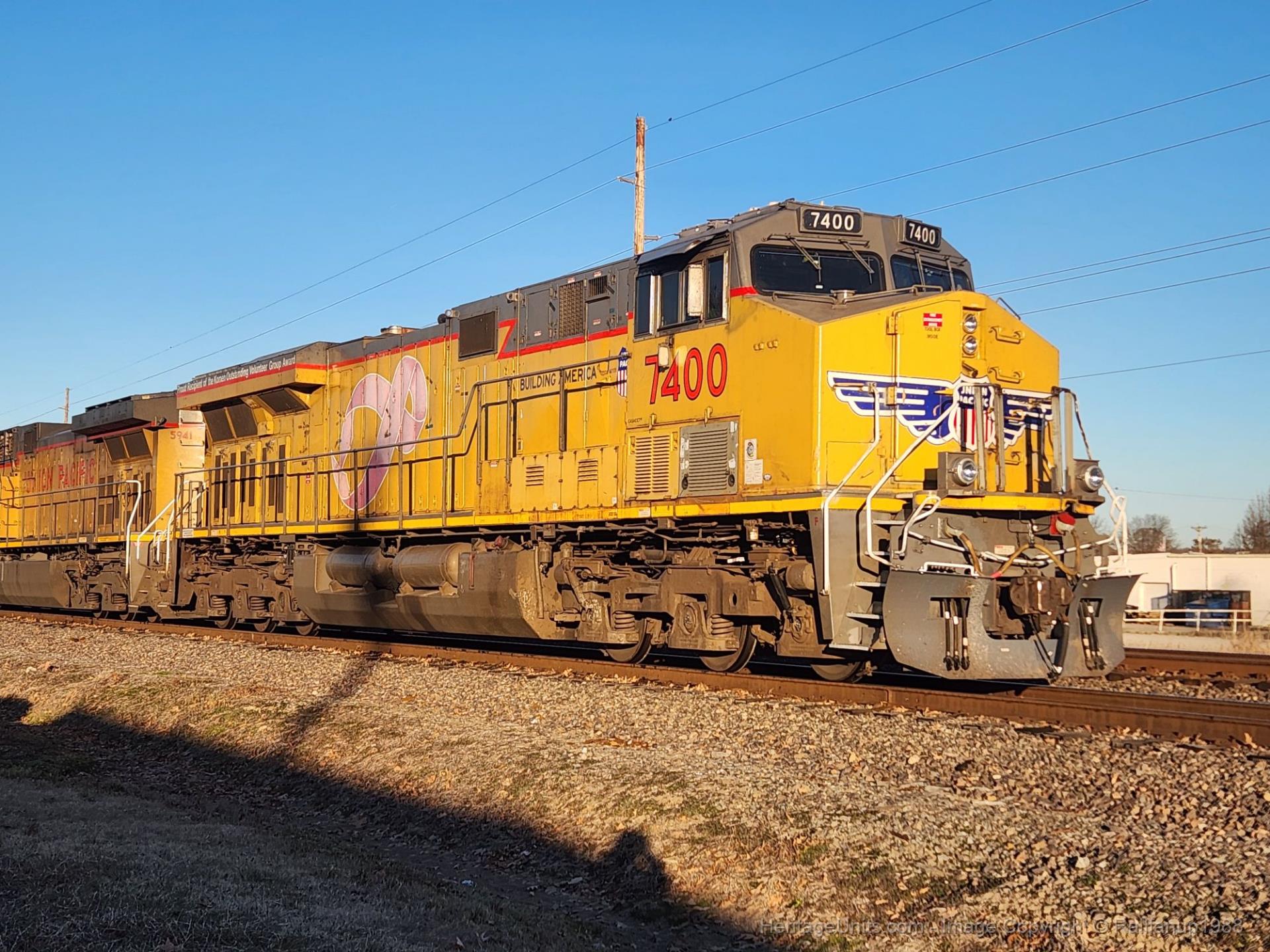My grandmother took this photo for me while I was in school. UP7400 sits on Dexter siding due to problems on the GSPPEV leading.