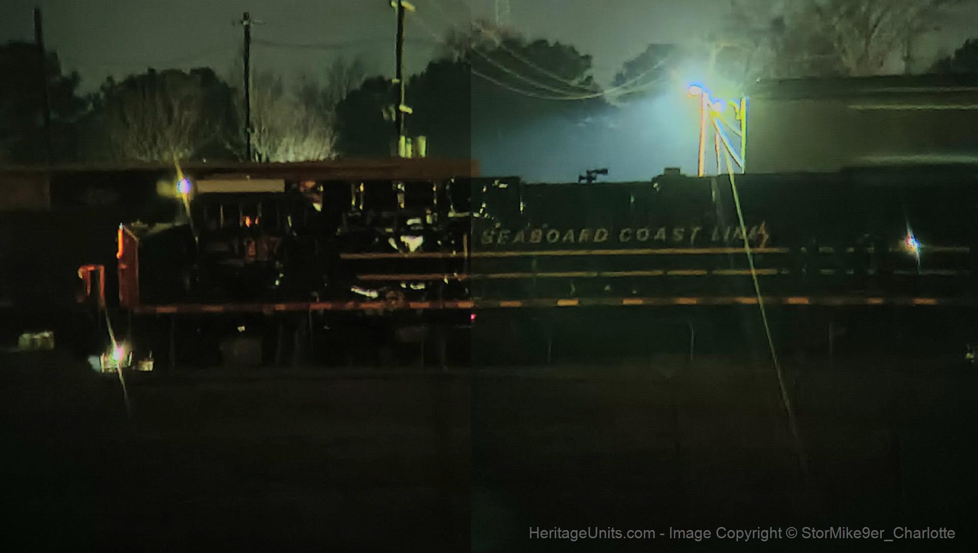 CSXT1967 sits in NS Andrews Yard on the head end of C319 as it awaits a recrew. Photo was taken off of Plowen Road. Photo shown is 2 photos taken of the same unit, brightness boosted and spliced together. A wide screen shot was not possible as this picture was taken by a phone camera through binoculars