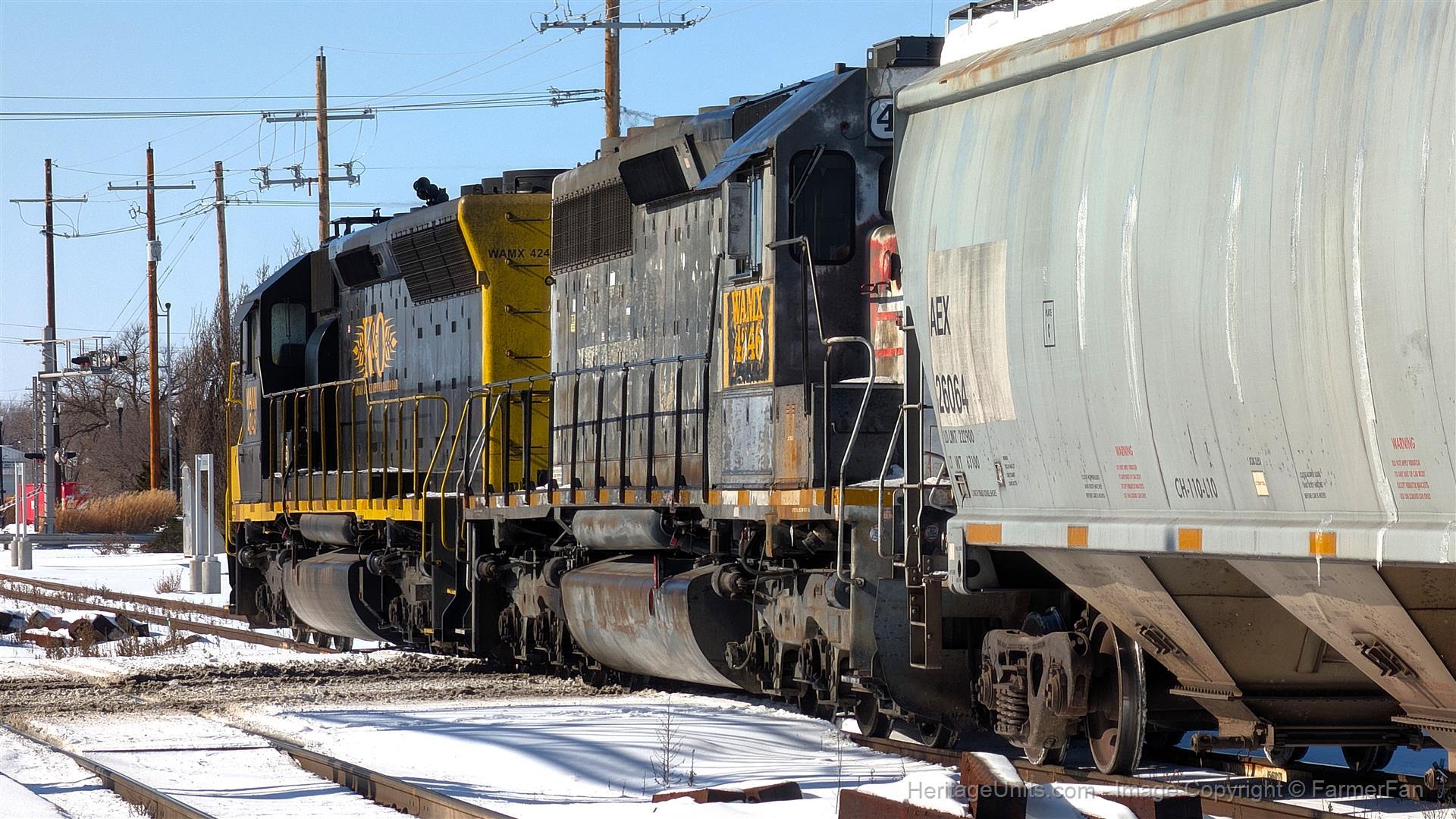 WAMX #4245 leads the KO Hutch local back to K&O trackage in downtown Hutchinson with #4246 in tow. This train runs with a BNSF symbol while on foreign trackage.