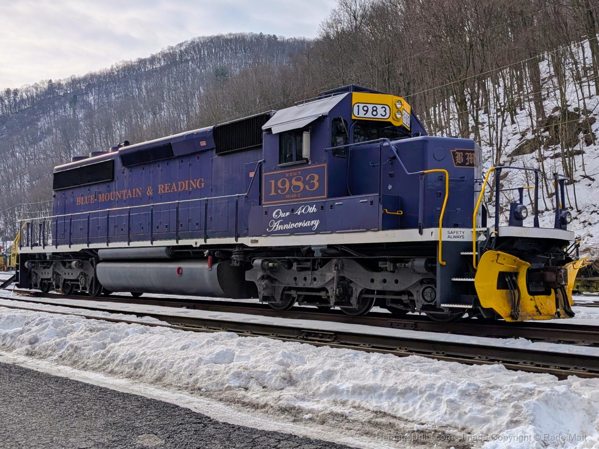 Sitting in the Port Clinton yard while 2102 goes by on the winter Iron Horse Ramble.