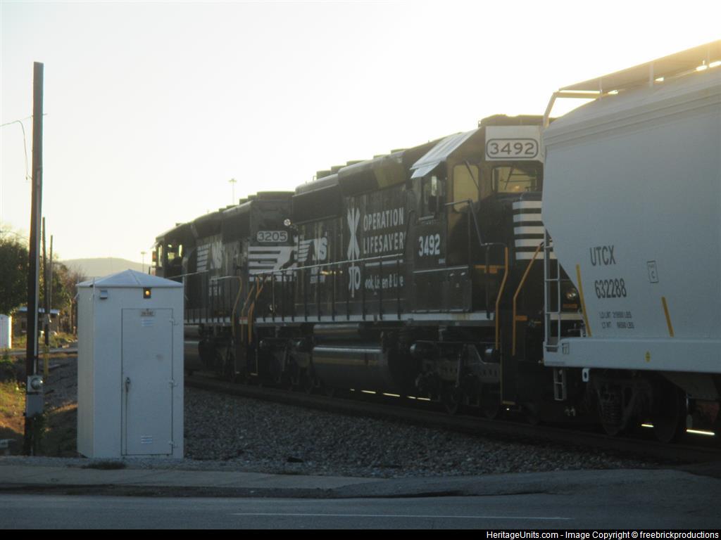 NS 3492 trails on a NS local freight in downtown Huntsville, AL on the afternoon 11-19-15.