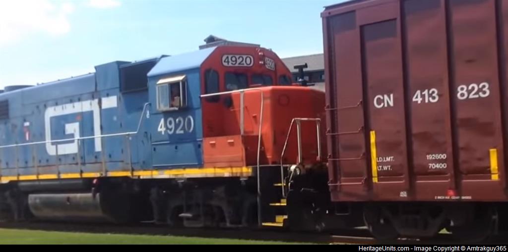 GTW 4920 shoves CN L504 into its last customer at the end of the line, Dunn Paper. 4920 also notably retained its original Nathan M5 horn as well.