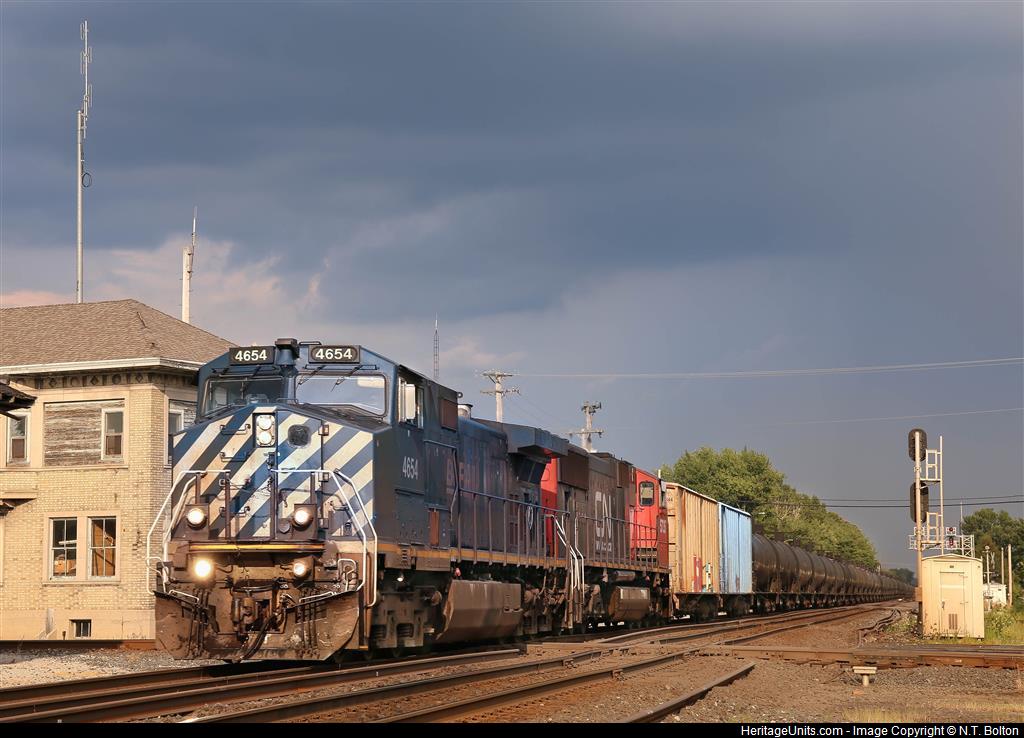 BCOL 4654 leads CSX train K615-29 westbound across the diamond at Deshler.