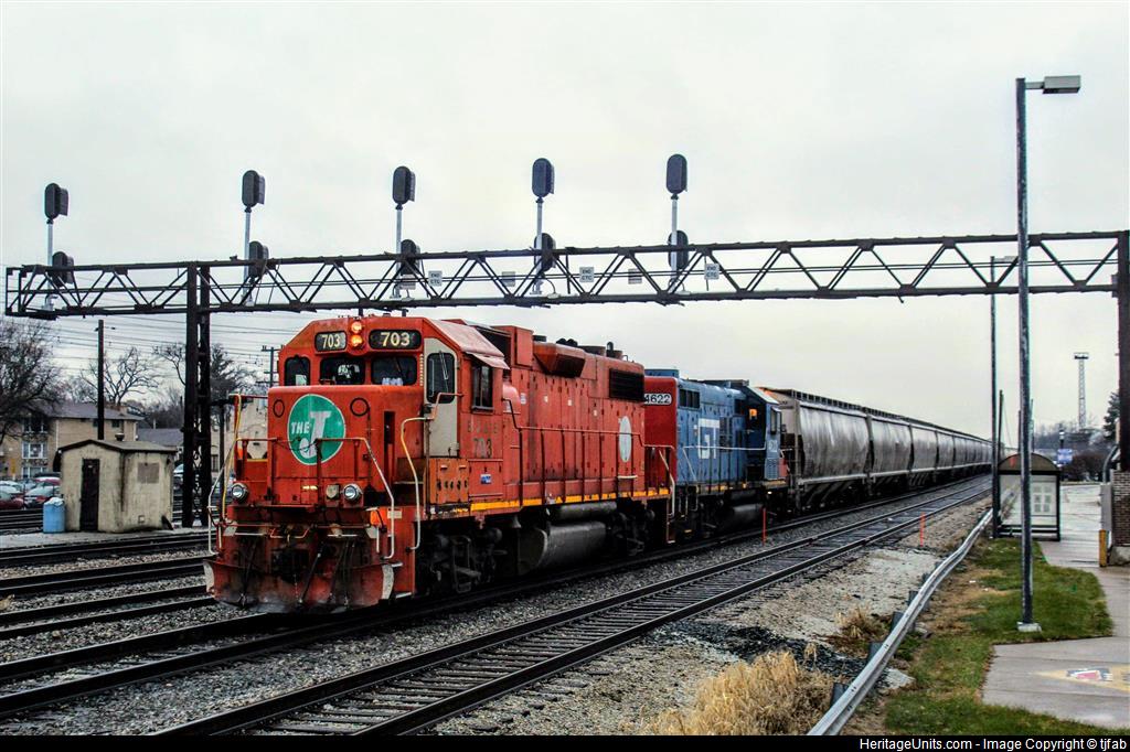 EJ&Es only GP38-2 leads a GTW GP9r on a pull down