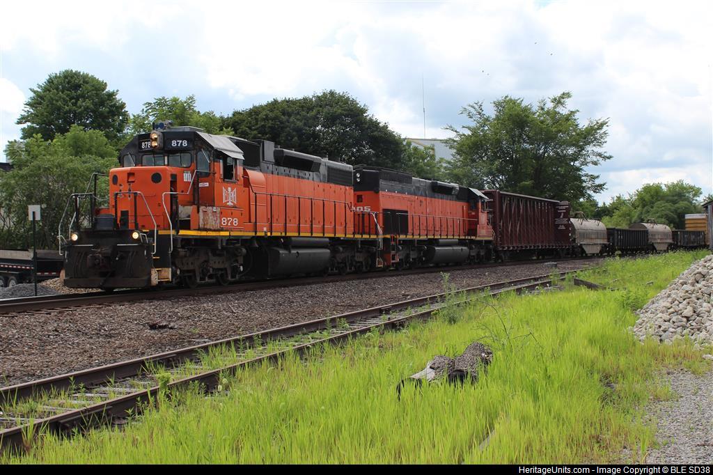 BLE 878 and 905 head south after switching an industry in Grove City, PA.