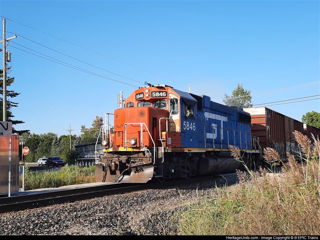 Grand Trunk & Western #5846 leading CN L533 headed for Detroit, MI. Picture was taken on 9/21/2020 at 5:37 PM on Range Rd. in Port Huron, MI.