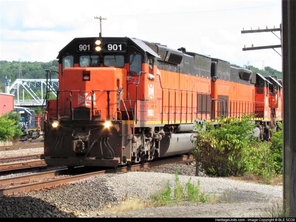 BLE901 deadheading northbound with BLE 907 and 905 trailing through Butler yard on the main.
