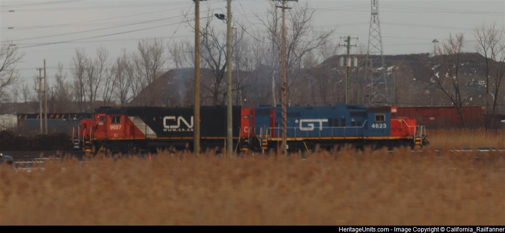 GTW 4623 sits with CN/IC 9607 in Gary