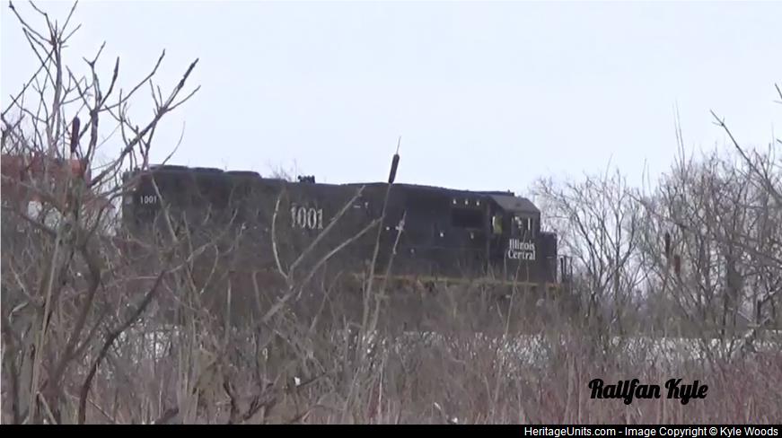IC 1001 leads a train along with BCOL 4620 (seen behind it covered by the tree)