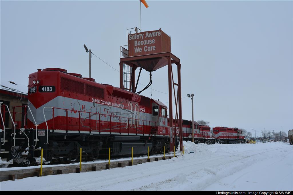 WSOR 4183 30th. Anniversary engine. Tied up in Janesville, Wis.