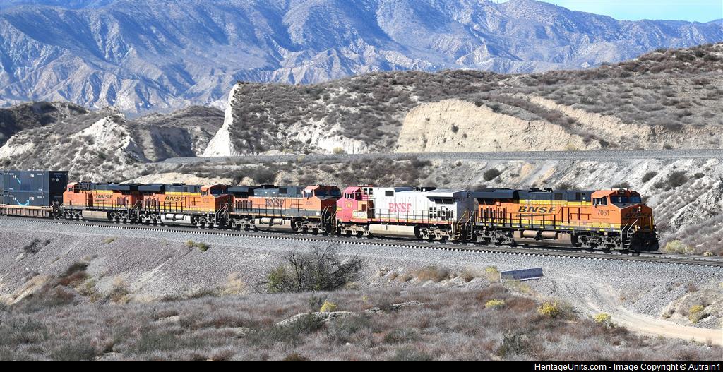 BNSF 747 eastbound near Hill 582 almost to summit un Cajon Pass