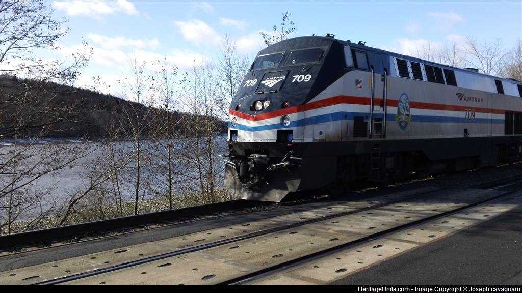 amtrak P32AC-DM #709 Pulls into Amsterdam NY