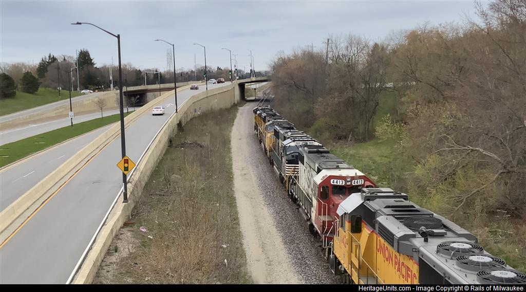 SOO 4423 trails 4/6 on UP MALG-3. First ever SOO Line locomotive.