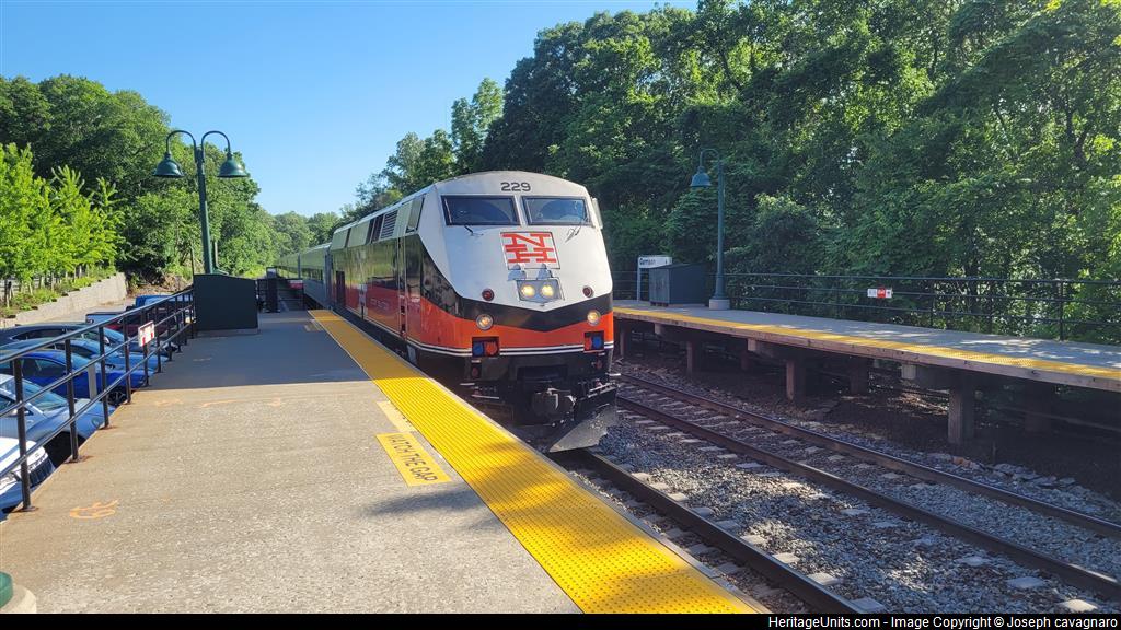 P32AC-DM 229 leads a train to poughkeepsie