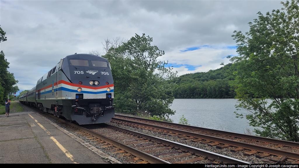 amtrak P32AC-DM 705 pulls into Amsterdam NY