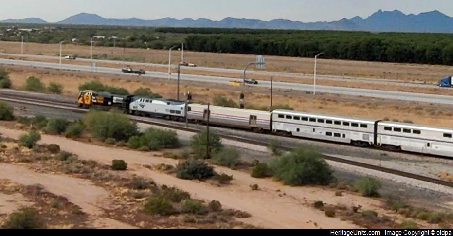 #HeritageUnit #amtk203 #sunsetlimited spotted eastbound at Eloy, AZ. It’s doing like 70 mph and my #djifpv #drone tops out at 61 #oldpa