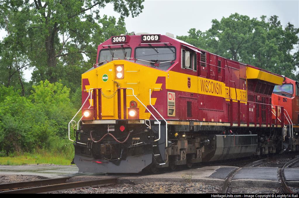 In the lead through Spaulding Junction during a thunderstorm bound for Winnipeg.
