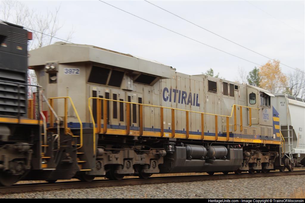 unflagged CN 3972 trails second on a Northbound Manifest