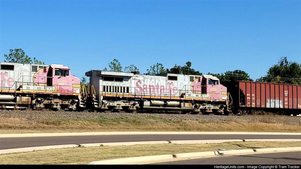 2 ATSF Warbonnets! 629 Trails 2nd and 650 Trails 3rd. BNSF 4296 Leads. This train passed through Norman, OK at 2:45 PM going slow heading North.