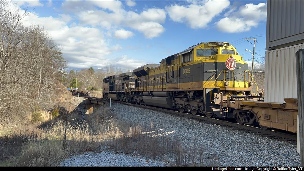 NS 1069 VIRGINIAN Heritage Unit trailing 2nd out on Ns 288. taken at Pulaski, Va