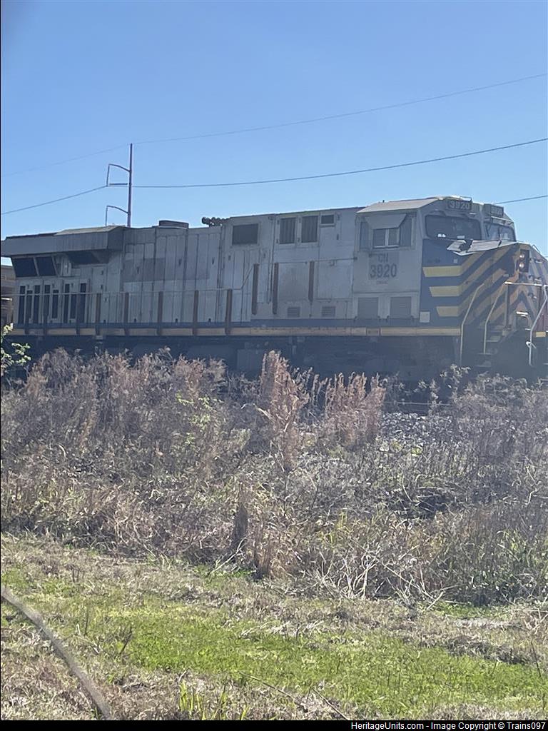 Cn 3920 is trailing with ex Illinois central (Cn) 1030 leading to Mississippi
