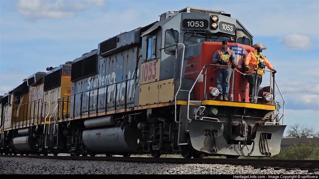 UP1053 and 2 other geeps returning to Tucsons train yard after doing local work