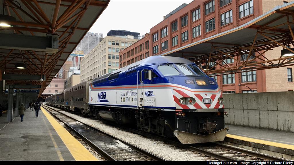 Metra MP36-3C No#402 , State of Illinois Unit Leads Metra Rock Island Mainline Train #405 West Departing LaSalle St Station in Chicago for Joliet, Illinois at 7:53am .