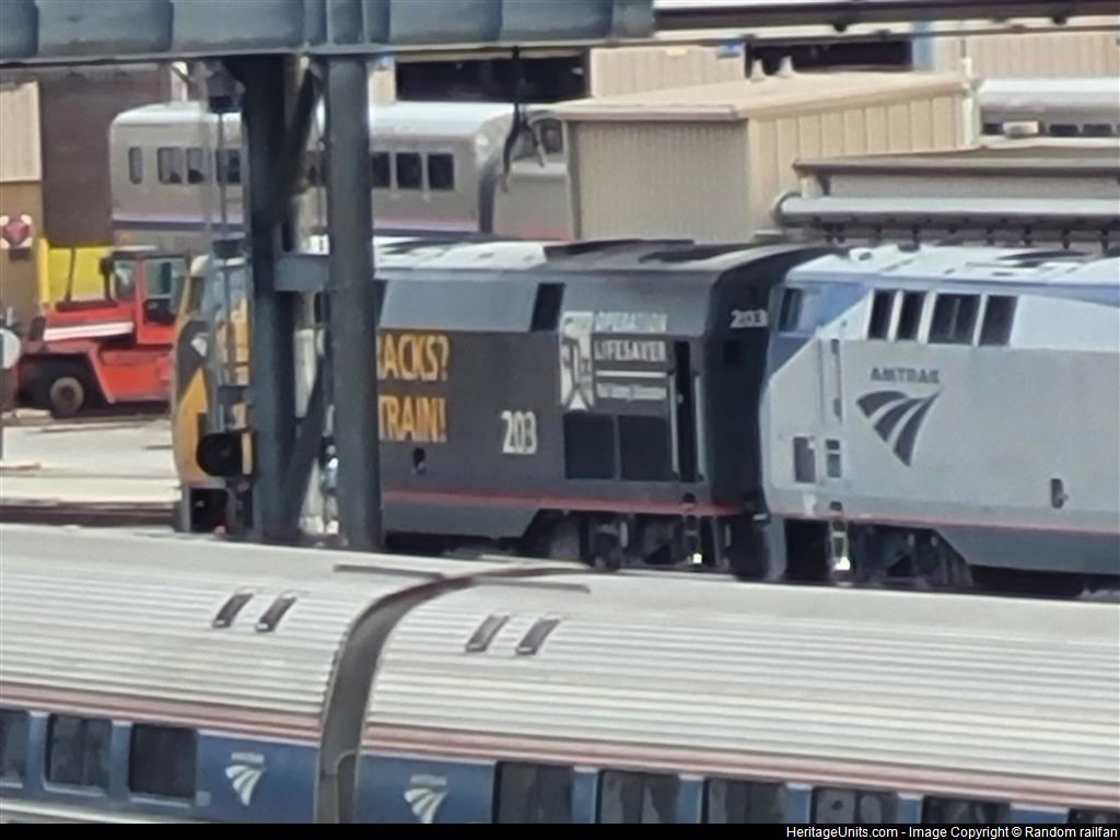 203 sits in the shops with 46 elsewhere, probably being serviced for another train.