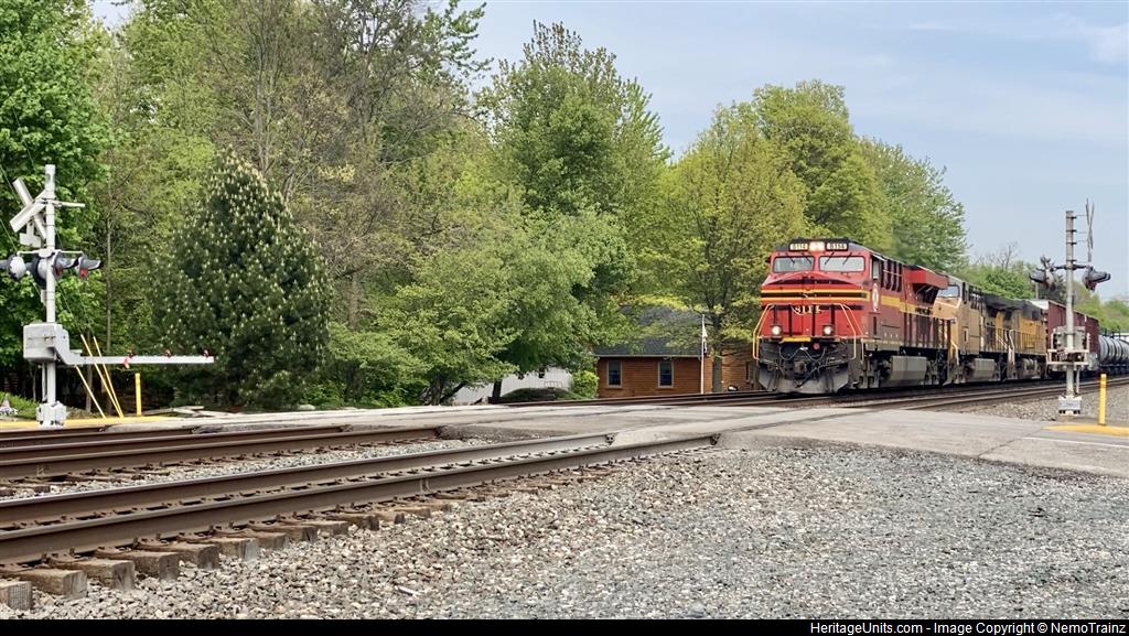 NS8114 leads a westbound manifest freight through Olmsted Falls, just outside the depot.